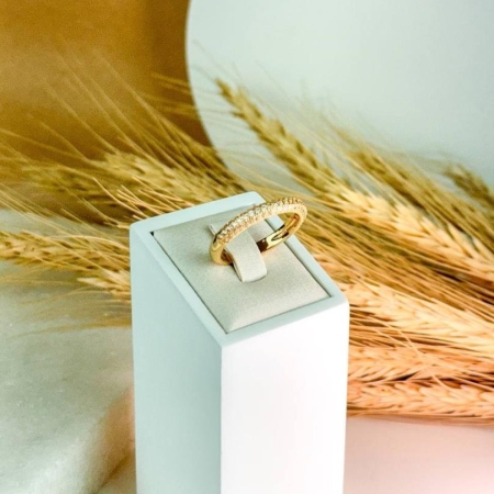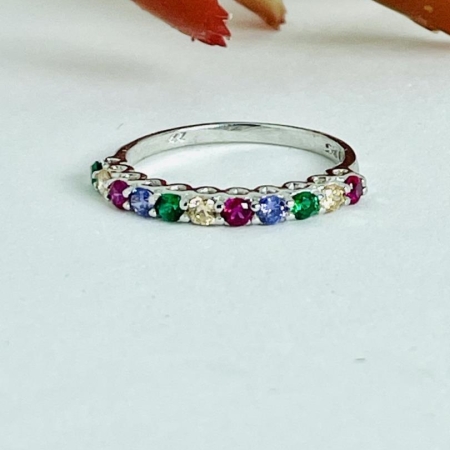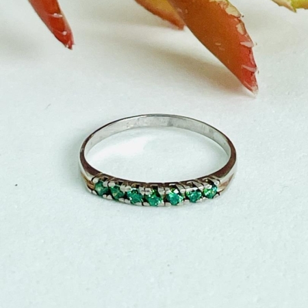 • Meia Aliança de Prata com Pedras Verde Esmeralda