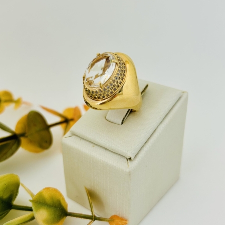 • Anel Cravejado Com Pedra Citrino Cristal Rodolita