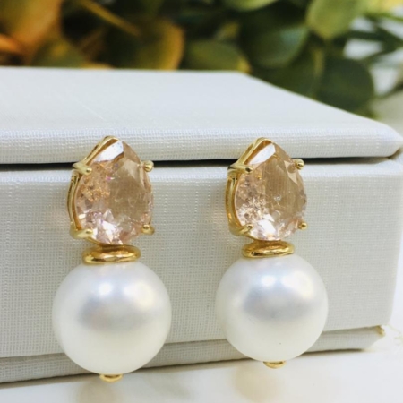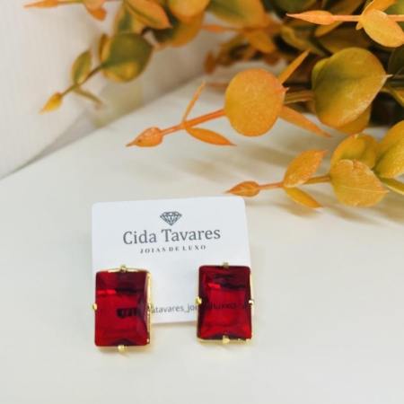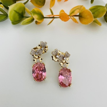 • Brinco Pedra Rosê com Zircônias Cravejadas