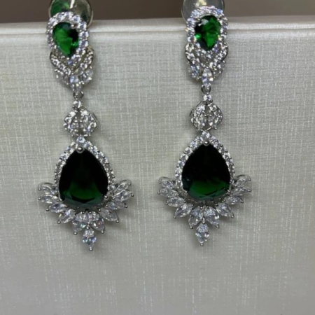 • Brinco Pedra Verde Esmeralda Com Zircônias Cravejadas