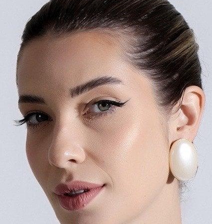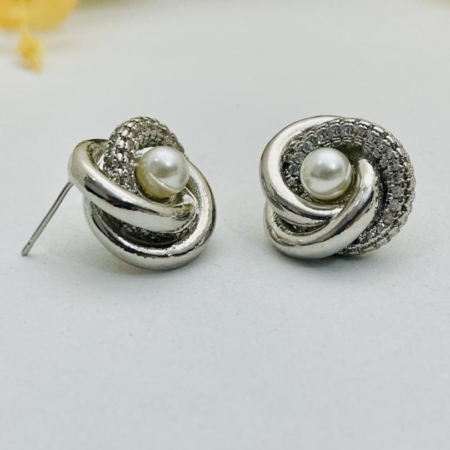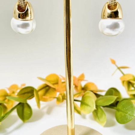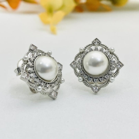 • Brinco Prata com Banho de Ródio e Pérola Central com Zircônias Cravejadas