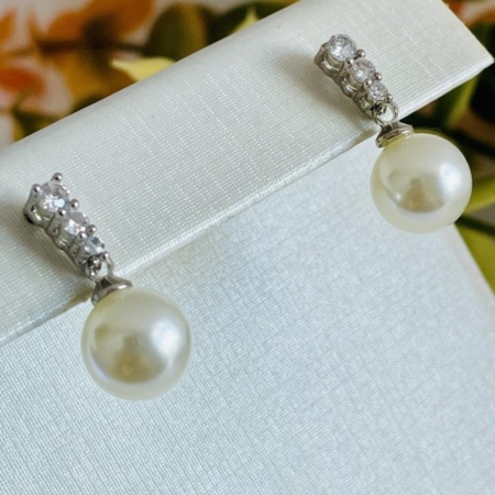 • Brinco Prata de Pérola com Banho de Ródio e Zircônias Cravejadas
