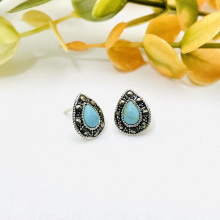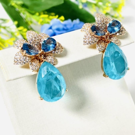 • Brinco Prata Envelhecida Formato Gota Pedra Azul