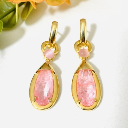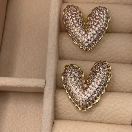 • Brinco Rosê Formato Coração Com Pedras Cravejadas