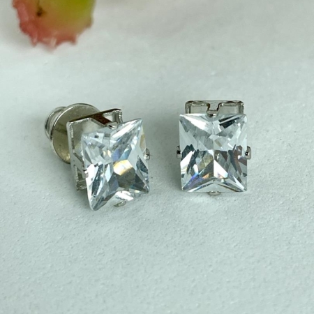 • Brincos Prata Quadrado com Zircônia Cravejada