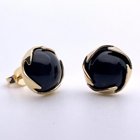 • Brincos Redondo Com Pedra Na Cor Preta