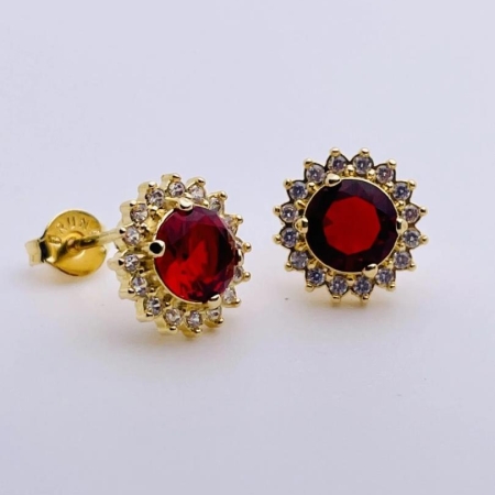 • Brincos Redondo Cravejado Com Pedras Na Cor Vermelha