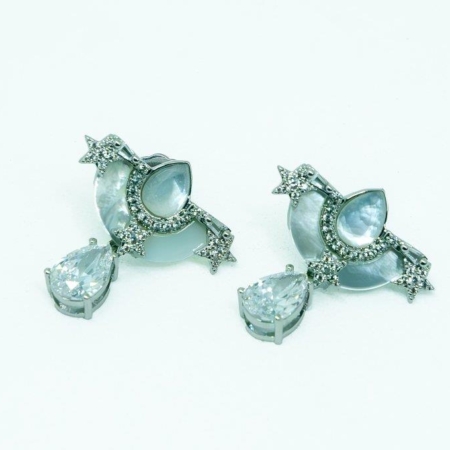 • Brinco Com Zircônias Cravejadas e Madrepérola Cortada A Laser