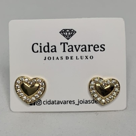 • Brinco Coração Com Zircônias Cravejadas