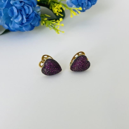 • Brinco Coração Duplo Cravejado Com Pedra Rubi