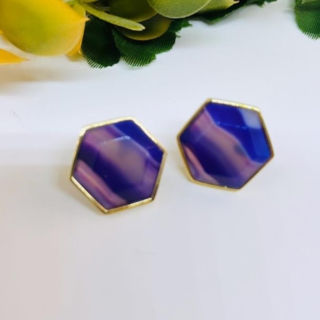 • Brinco De Luxo Com Pedra Natural Rosa E Lilás Listrada