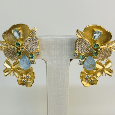 • Brinco De Luxo Com Pedras Agua Marinho E Zircônias Cravejadas