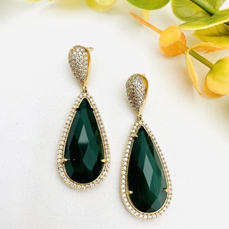 • Brinco de Luxo Cravejada Pedra Fusion Facetada cor Verde Esmeralda