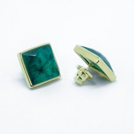 • Brinco De Pedra Natural Verde Esmeralda Formato Quadrado