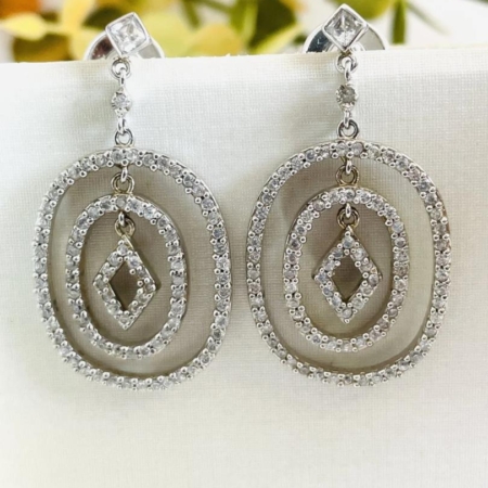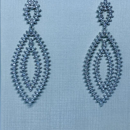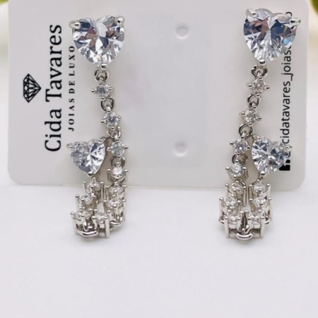• Brinco De Prata Longo Com Zircônias Cravejadas