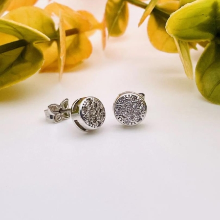 • Brinco de Prata Redondo com Banho de Ródio e Zircônias Cravejadas