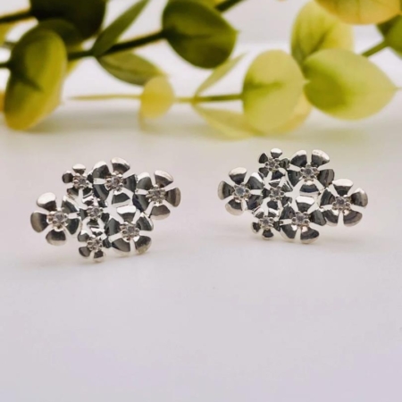 • Brinco Earcuff de Prata Formato Flores com Banho de Ródio