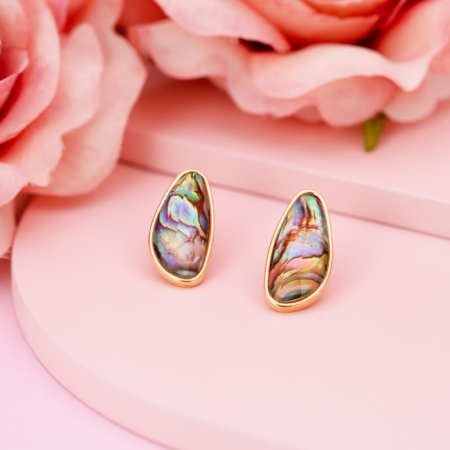• Brinco Dourado com Pedra Abalone Forma Geométrica