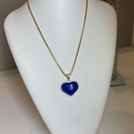 • Colar Com Pingente Formato Coração Pedra Natural Cor Azul Bic