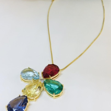 • Colar com Pingente Menina Cravejado com Pedras Coloridas