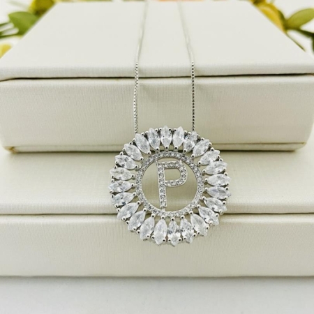 • Colar Com Pingente Inicial Letra P Cravejado
