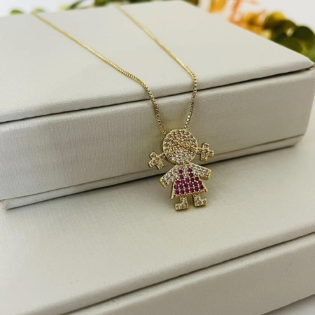 • Colar com Pingente Menina e Cravejamento