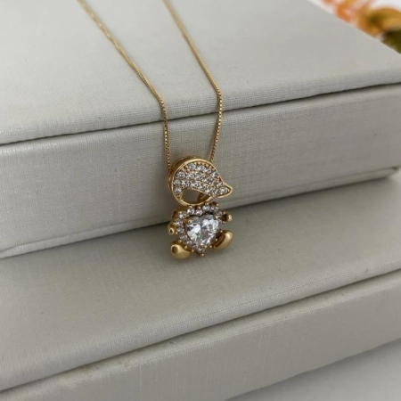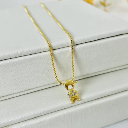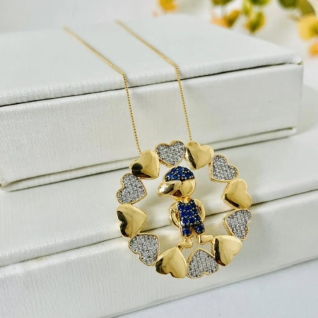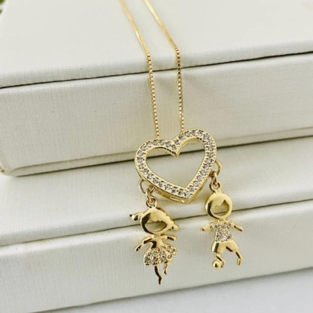 • Colar com Pingente Menino e Menina com Coraçaõ Cravejado