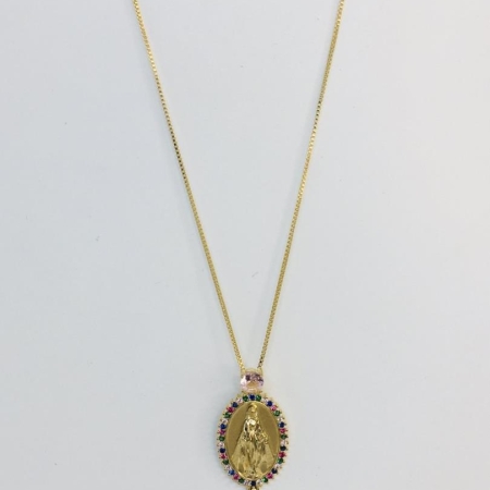 • Colar Com Pingente Nossa Senhora Das Graças Cravejada