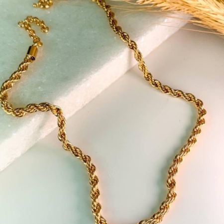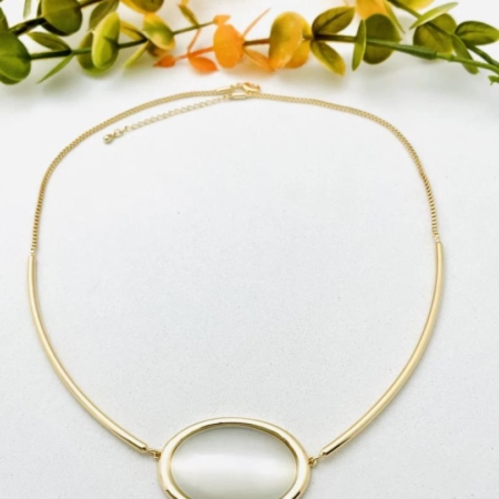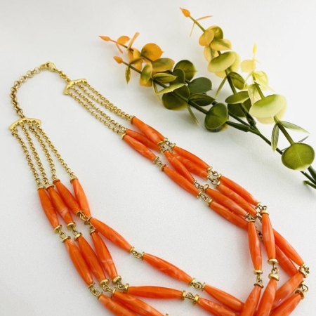 • Colar de Acrílico cor Laranja com Correntes Banhadas a Ouro 18k