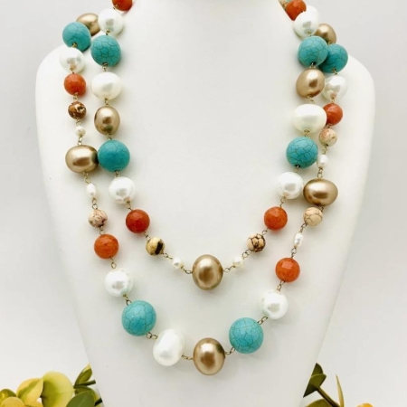 • Colar de Luxo com Pérolas Shell e Pedras Coloridas