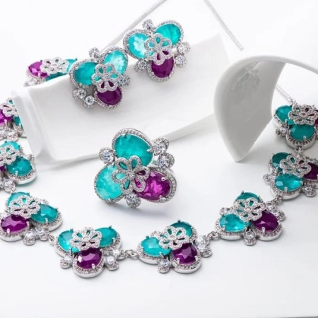 • Colar De Luxo Regulável Cravejado Com Zircônias Coloridas