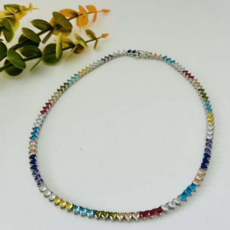 • Colar Riviera Com Pingente Borboleta de Pedras Coloridas