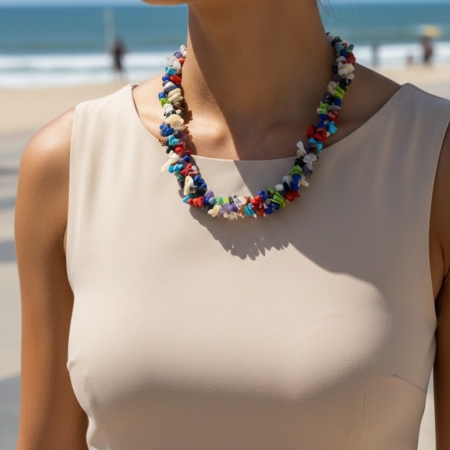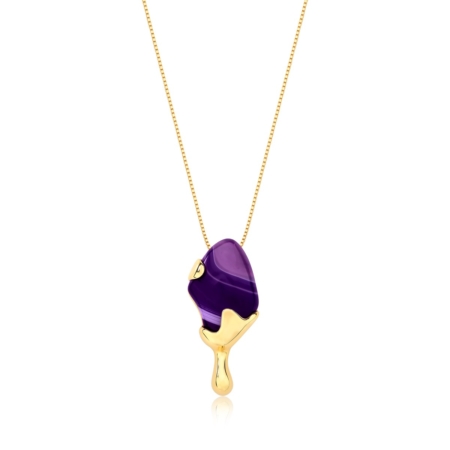 • Colar Longo com Pedra Ágata Roxa Listrada