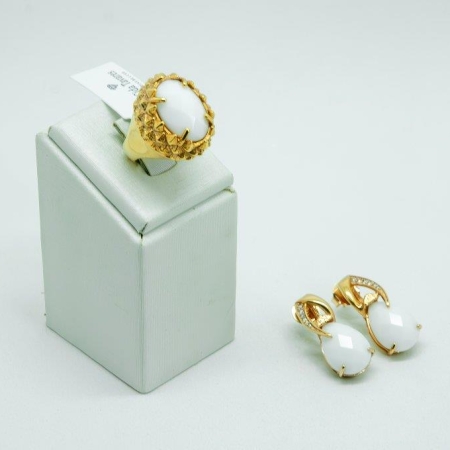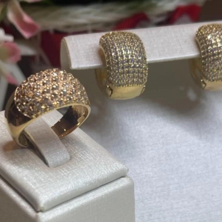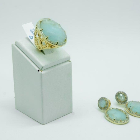• Conjunto Anel E Brinco Com Pedras Naturais Facetada E Cravejado