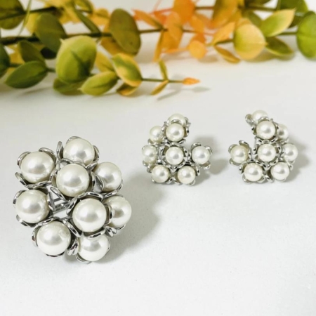 • Conjunto Anel e Brinco de Pérolas com Banho de Ródio