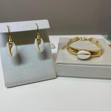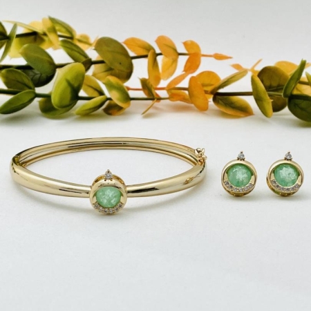 • Conjunto Bracelete e Brinco Pedra Verde Água