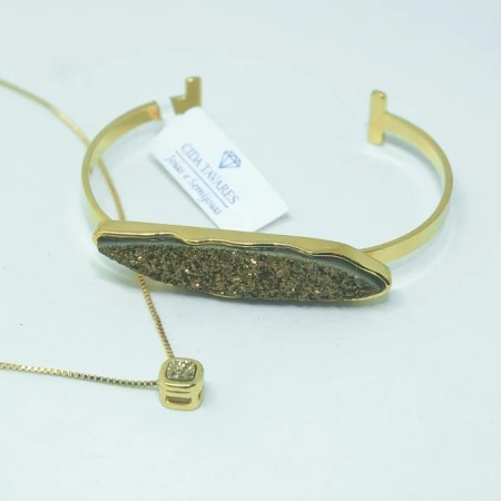 • Conjunto Bracelete e Colar De Pedras Drusa Ouro