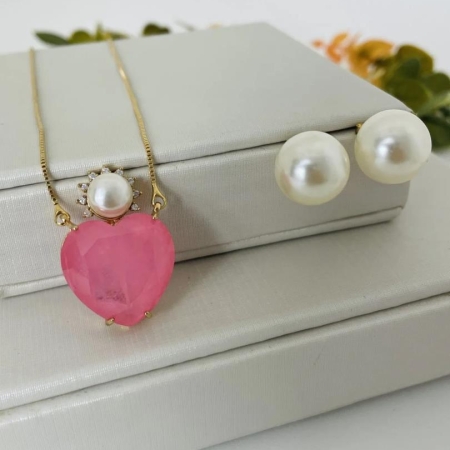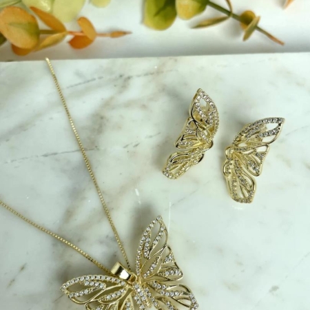 • Conjunto Brinco e Colar com Pingente Borboleta Cravejada