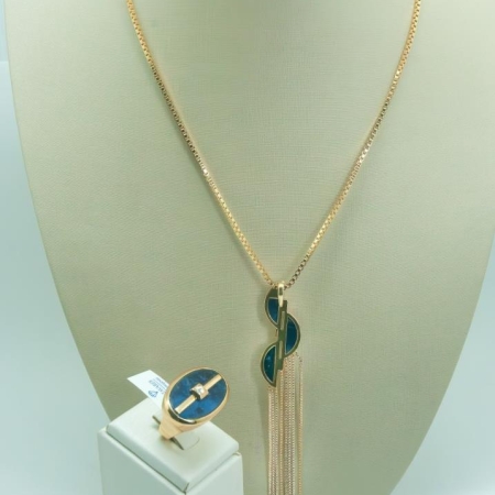 • Conjunto Colar E Anel Com Pedra Natural Sodalita Azul