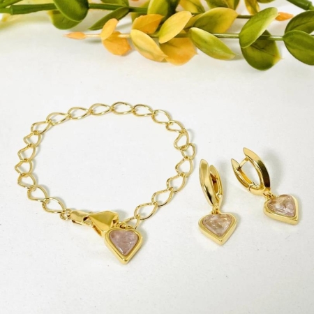 • Conjunto Coração De Pérola Com Cristal