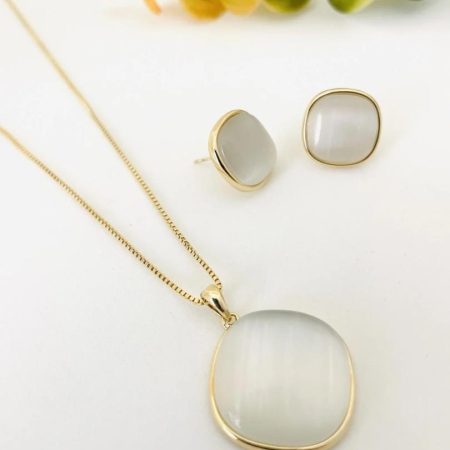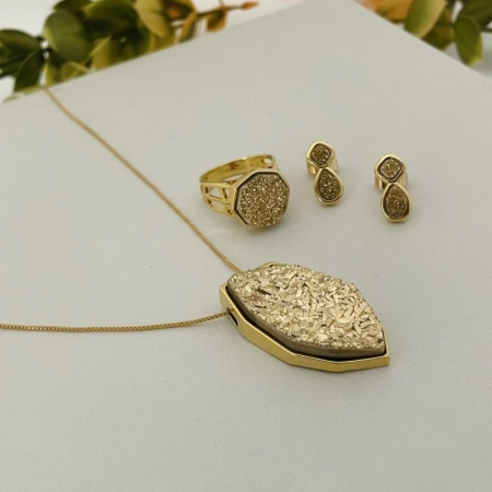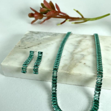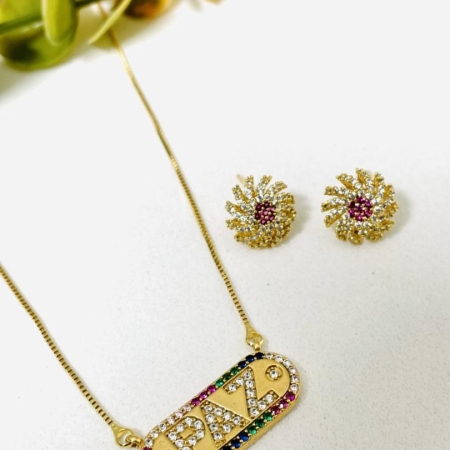 • Conjunto Luxo Colar E Brinco Com Pedras Verde E Rosa
