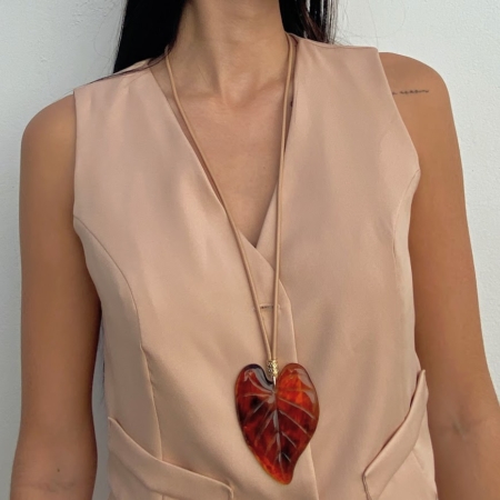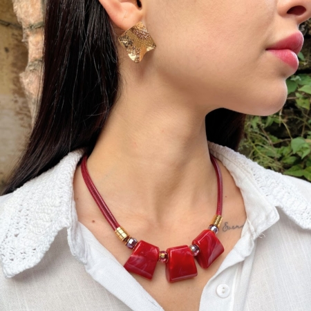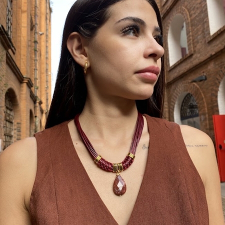 • Gargantilha de Fio Encerado e Pingente Gota de Jaspe Vermelho