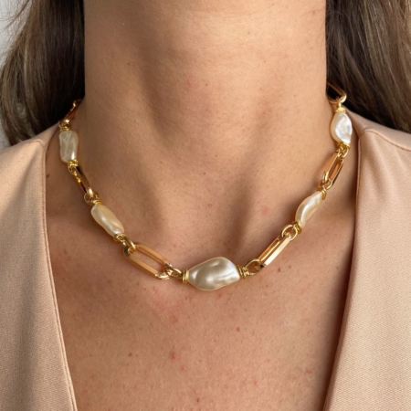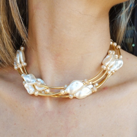 • Gargantilha em Pérolas em ABS e canos em Alumínio e Cristal