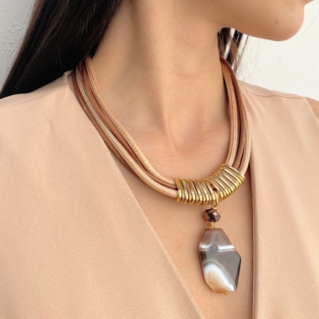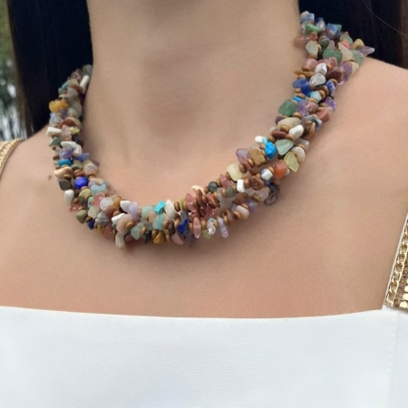• Gargantilha com Pedras Naturais Cascalho e Madeira