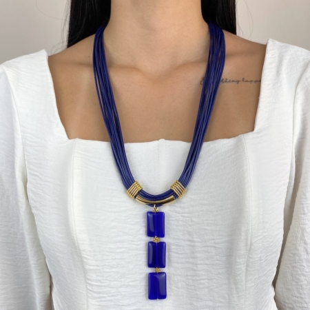• Colar Fio Encerado com Pingente Pedra Azul Anil