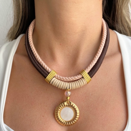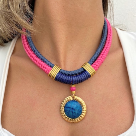 • Gargantilha Cordão Corda Náutica com Pingente de Metal Banhado