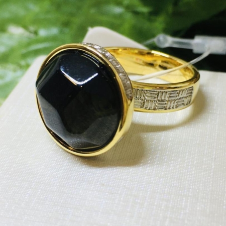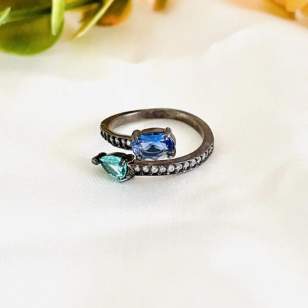 • Anel com Banho de Ródio Negro e Pedras Verde e Azul
