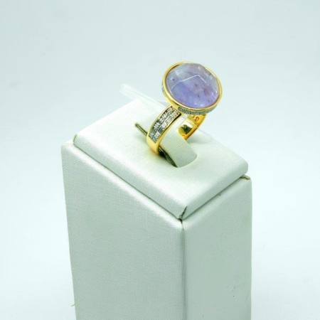 • Anel Com Pedra Ametista Redonda Cravejado Na Laterais