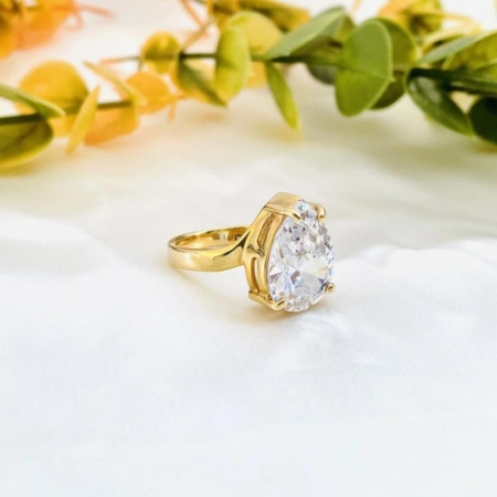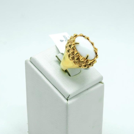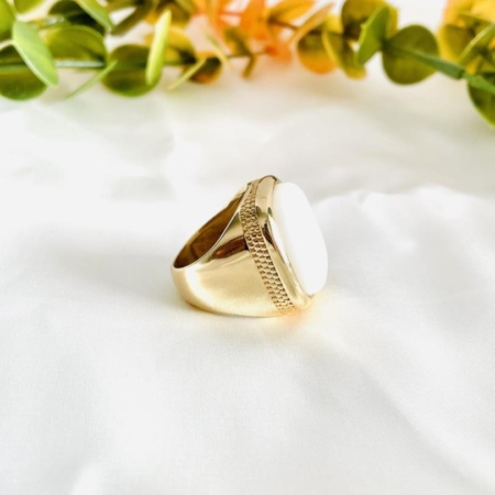• Anel Com Pedra Natural Oval Cor Branca Facetada