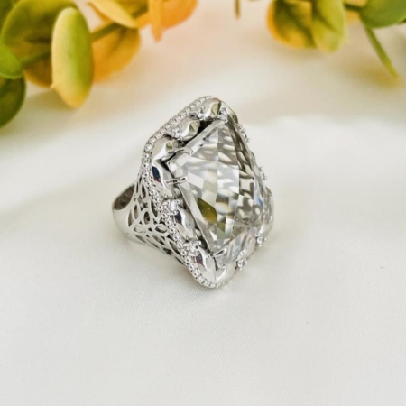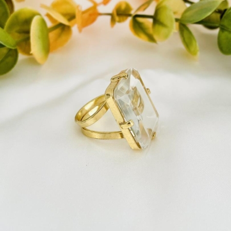 • Anel com Pedra de Vidro Quadrada Aro 18